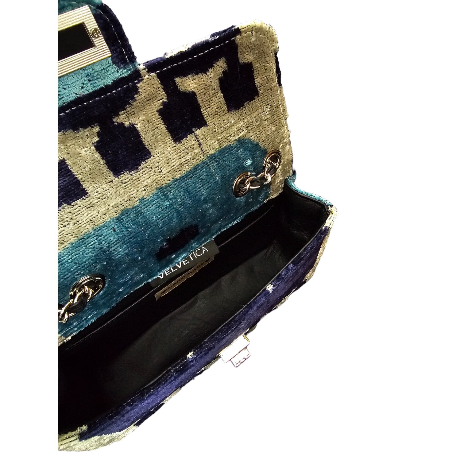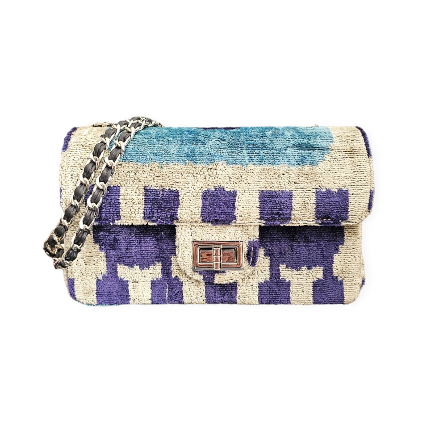Where Boho-Chic Meets Practical Luxury. Handcrafted in Turkey, this exquisite piece blends the timeless beauty of Silk Velvet Ikat with smart design. Featuring a unique genuine leather braided chain, it ensures a secure, non-slip grip while adding a premium touch to your style.
