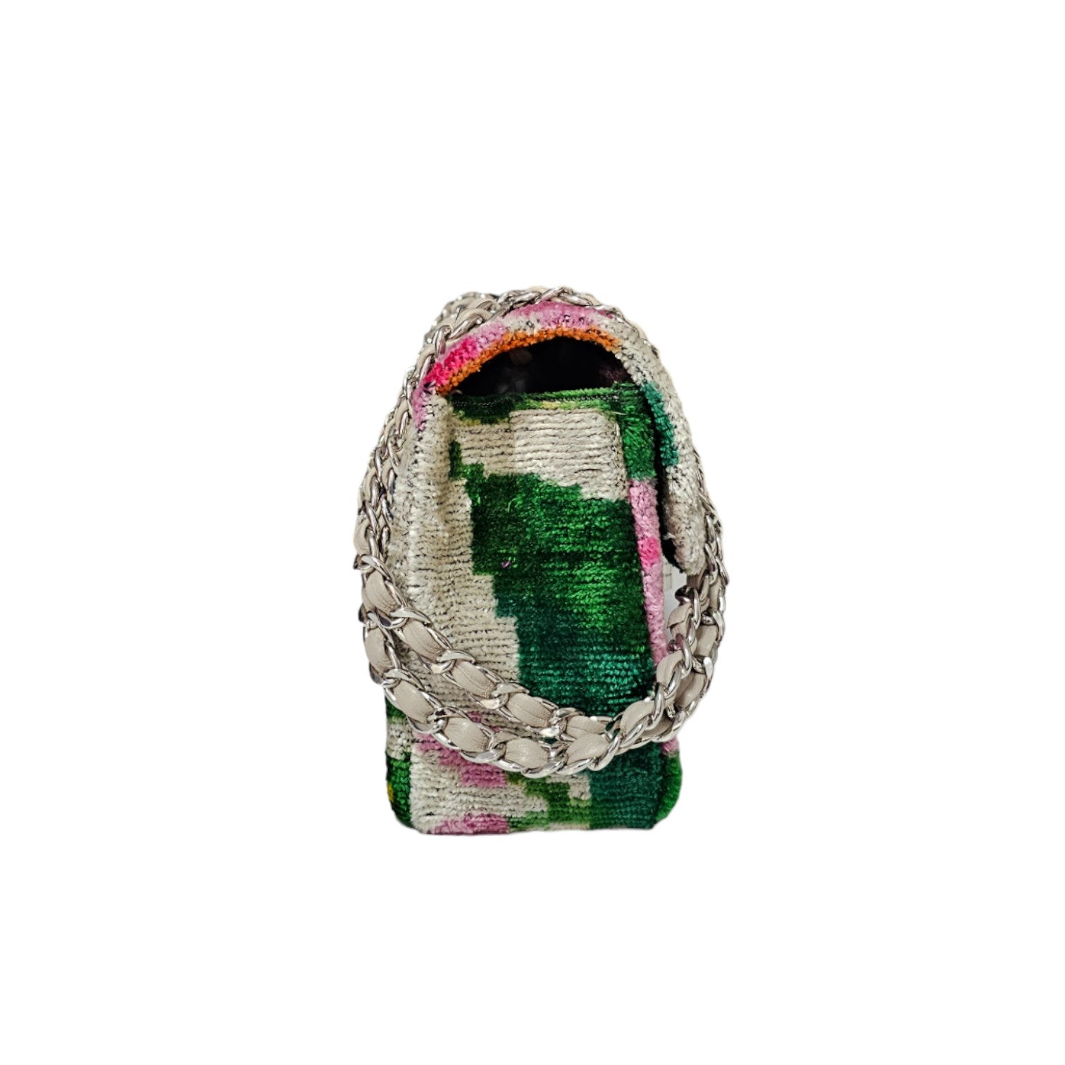 Where Boho-Chic Meets Practical Luxury. Handcrafted in Turkey, this exquisite piece blends the timeless beauty of Silk Velvet Ikat with smart design. Featuring a unique genuine leather braided chain, it ensures a secure, non-slip grip while adding a premium touch to your style.