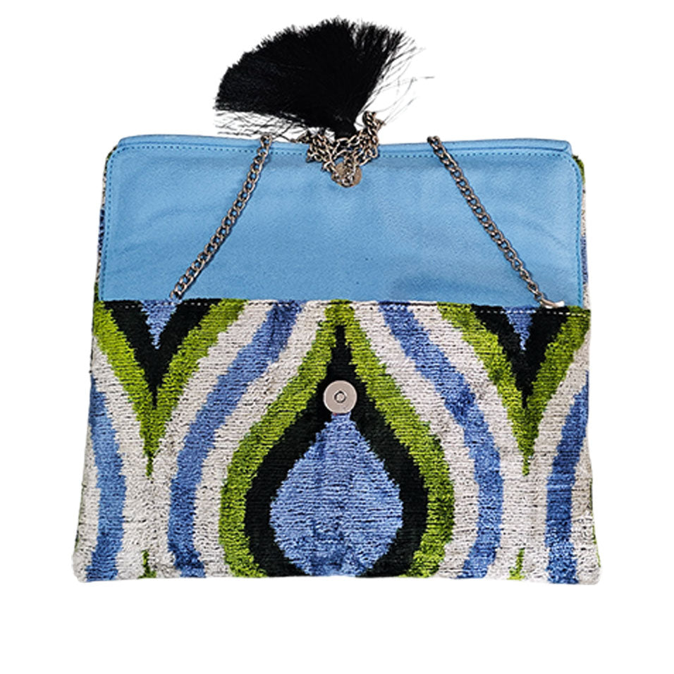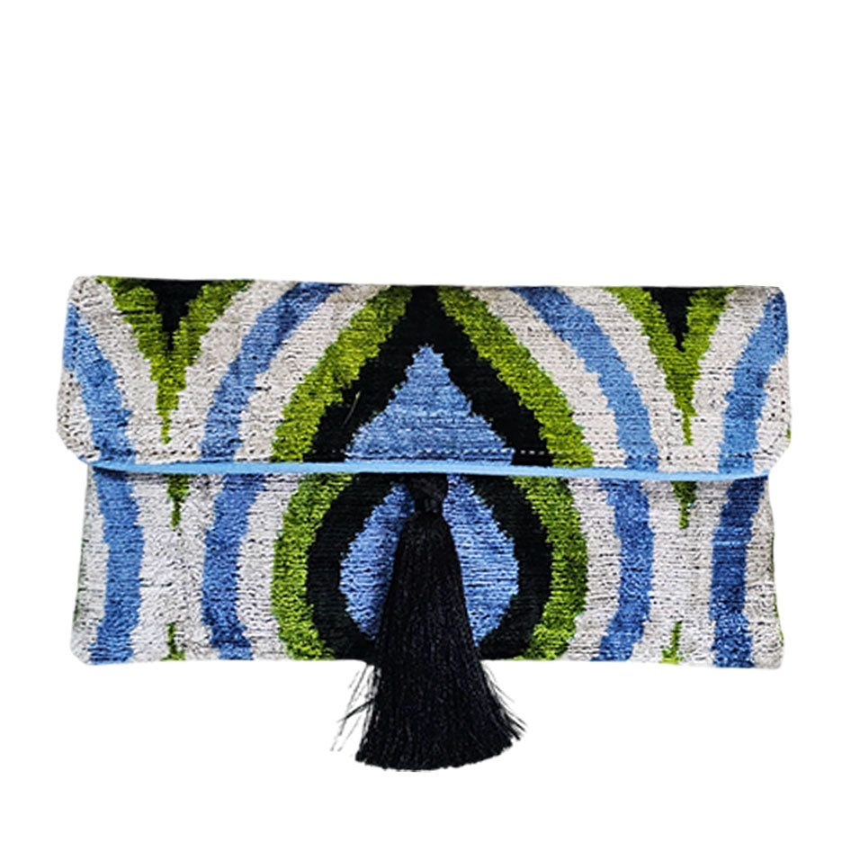 Where Boho-Chic Meets Versatile Luxury. Handcrafted in Turkey, this exquisite clutch blends the timeless beauty of Silk Velvet Ikat with modern functionality. Whether styled as a crossbody or carried by hand, it adds a sophisticated artisan touch to any ensemble.