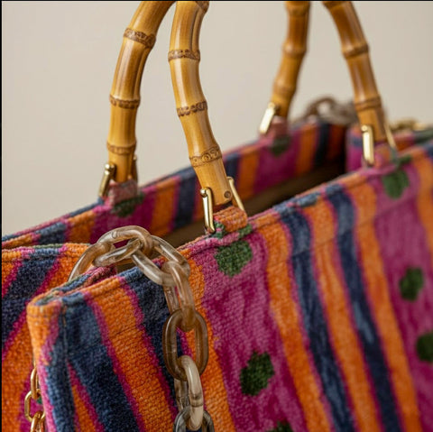 Velvetica Medium Tote Bag with Authentic Bamboo Handles