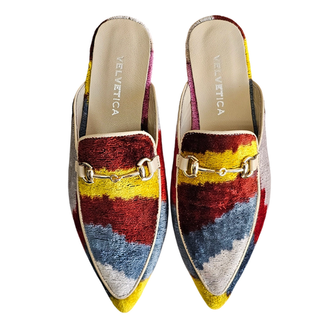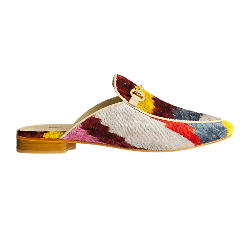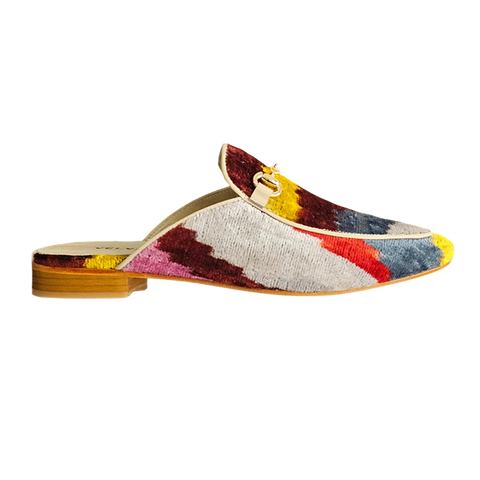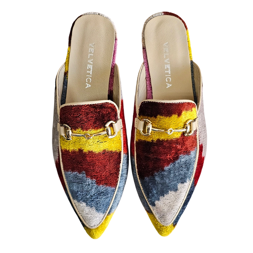 Entrez dans le luxe artisanal. Fabriquées à la main à Istanbul, Turquie, en utilisant un velours de soie vibrant, ces mules allient flair bohème et confort quotidien. La semelle en cuir véritable assure la stabilité, tandis que le design respirant vous garde sans ampoules.