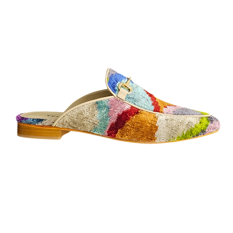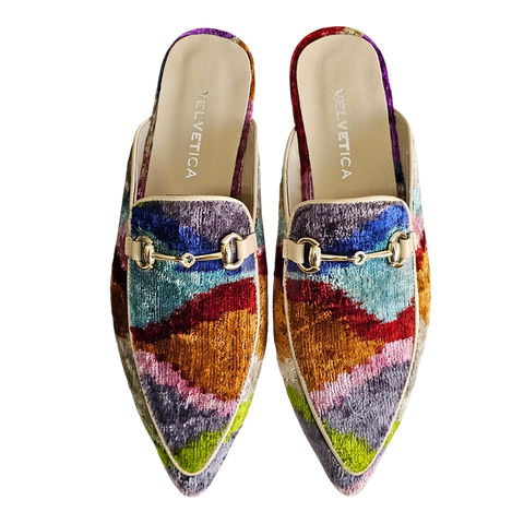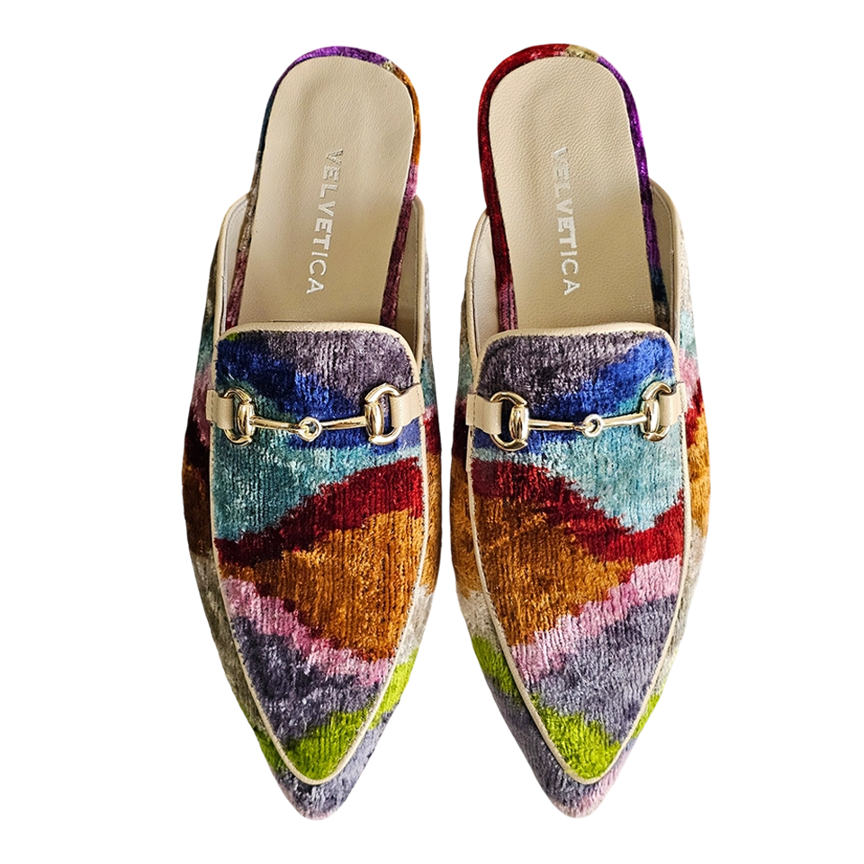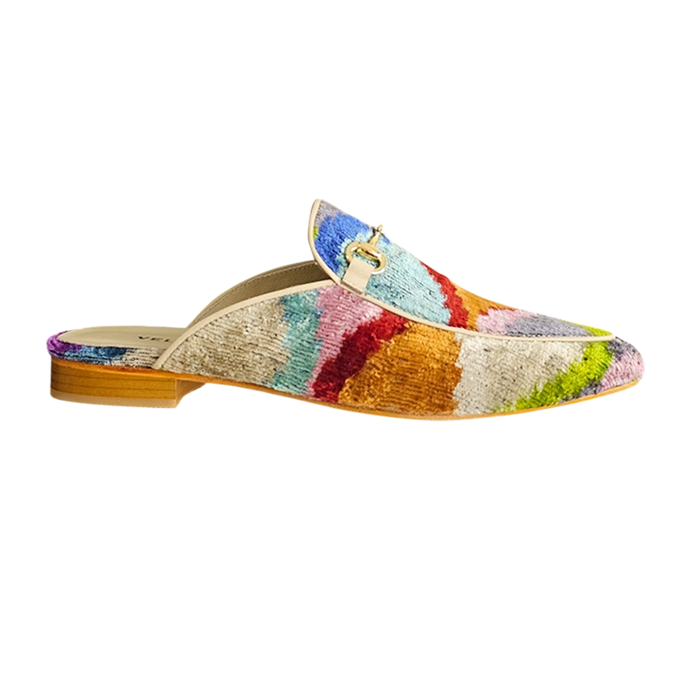 Entrez dans le luxe artisanal. Fabriquées à la main à Istanbul, Turquie, en utilisant un velours de soie vibrant, ces mules allient flair bohème et confort quotidien. La semelle en cuir véritable assure la stabilité, tandis que le design respirant vous garde sans ampoules.