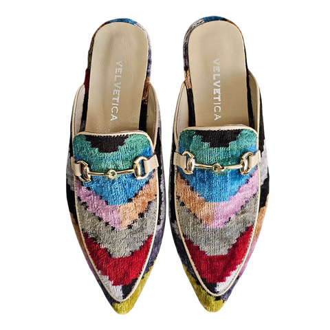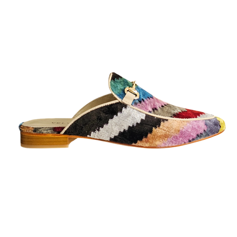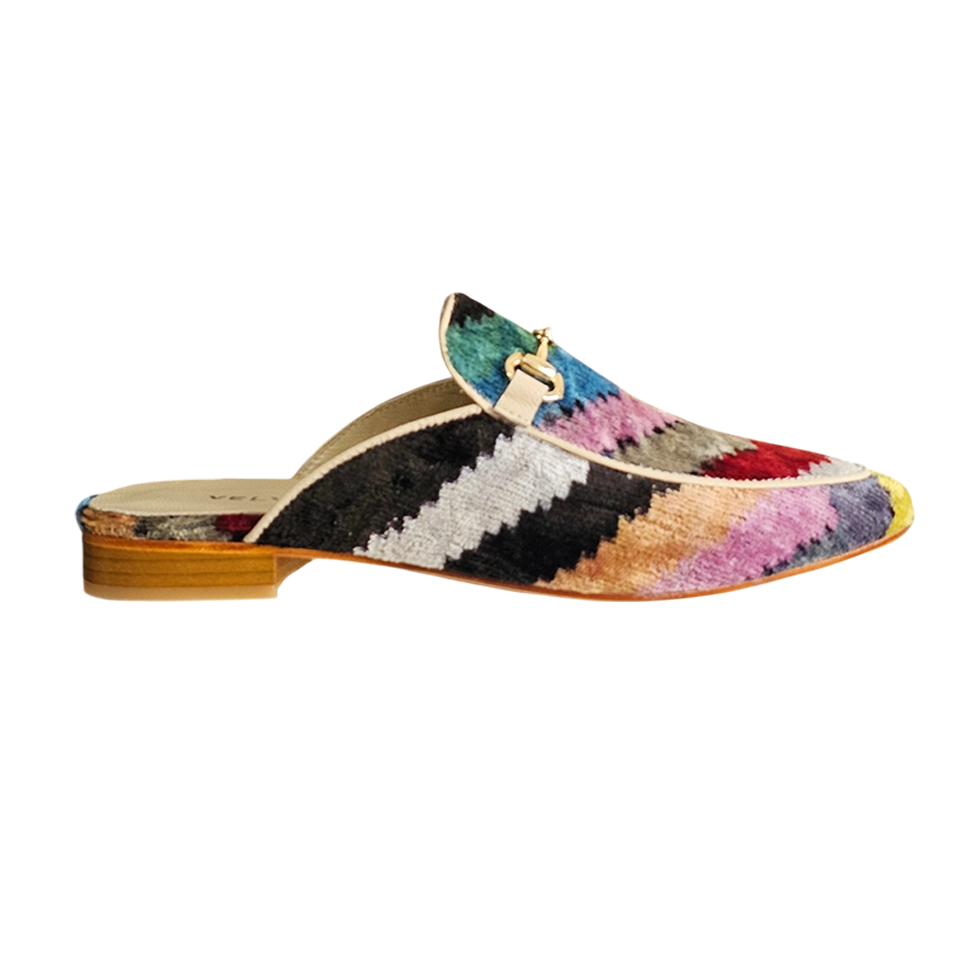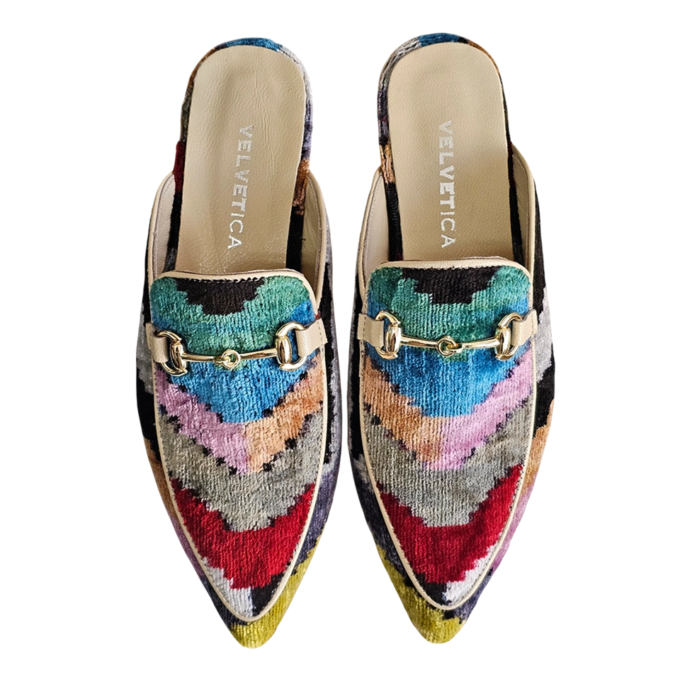 Entrez dans le luxe artisanal. Fabriquées à la main à Istanbul, Turquie, en utilisant un velours de soie vibrant, ces mules allient flair bohème et confort quotidien. La semelle en cuir véritable assure la stabilité, tandis que le design respirant vous garde sans ampoules.