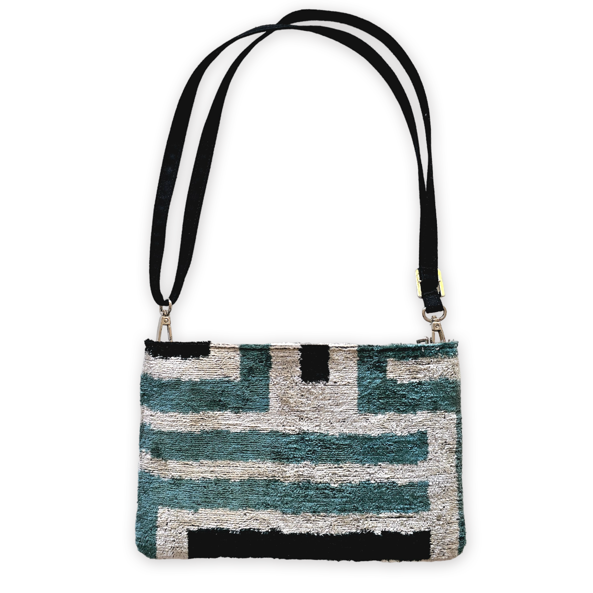 Introducing the exquisite VELVETICA POCHETTE - a small, light, and practical bag that proudly embraces a vegan lifestyle. Crafted from a luxurious blend of 75% silk and 25% organic cotton, this charming piece is intricately handwoven using traditional looms, showcasing its fine craftsmanship.