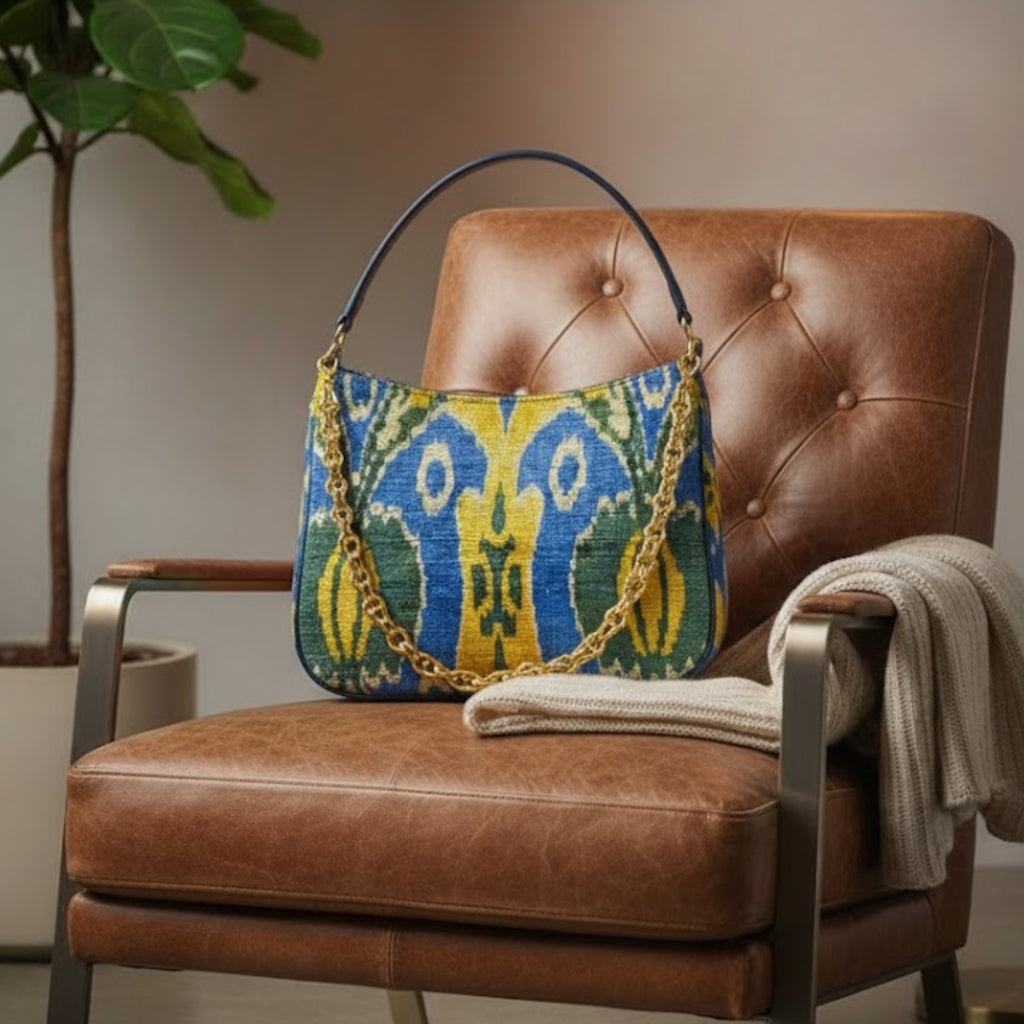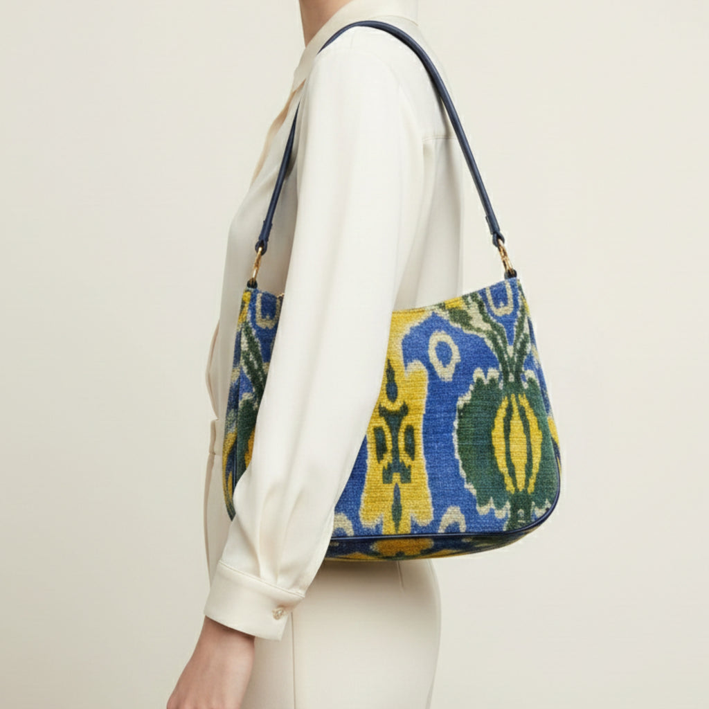 Elevate your style with the Nelly Exclusive Shoulder Bag, a seamless fusion of luxury and practicality. Crafted from handwoven silk velvet—75% silk and 25% organic cotton—this bag offers an exquisite texture and timeless elegance. Measuring 30cm x 22cm x 11cm (11.8 x 8.7 x 4.3 inches), it’s compact yet spacious enough for your essentials.