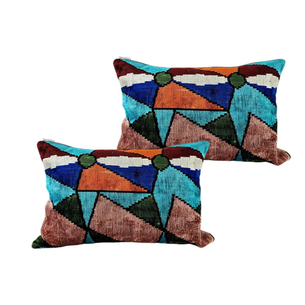 Velvetica Silk Velvet Ikat Cushions – A Set of 2 (40 x 60 cm)