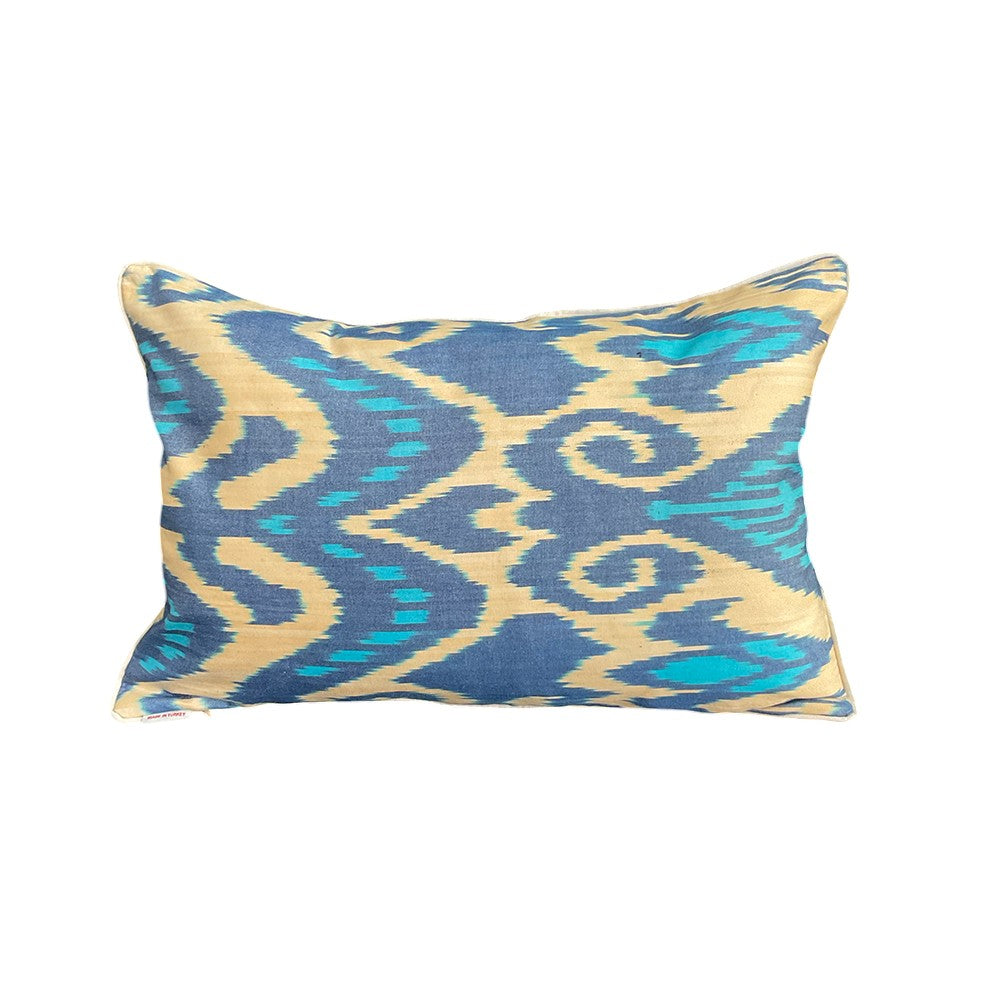 Handmade in Istanbul, this cushion reflects sustainable practices and artisanal expertise. The silk velvet ikat front offers a soft, luxurious texture, while the silk ikat fabric back provides durability with a refined aesthetic, making it both functional and stylish.