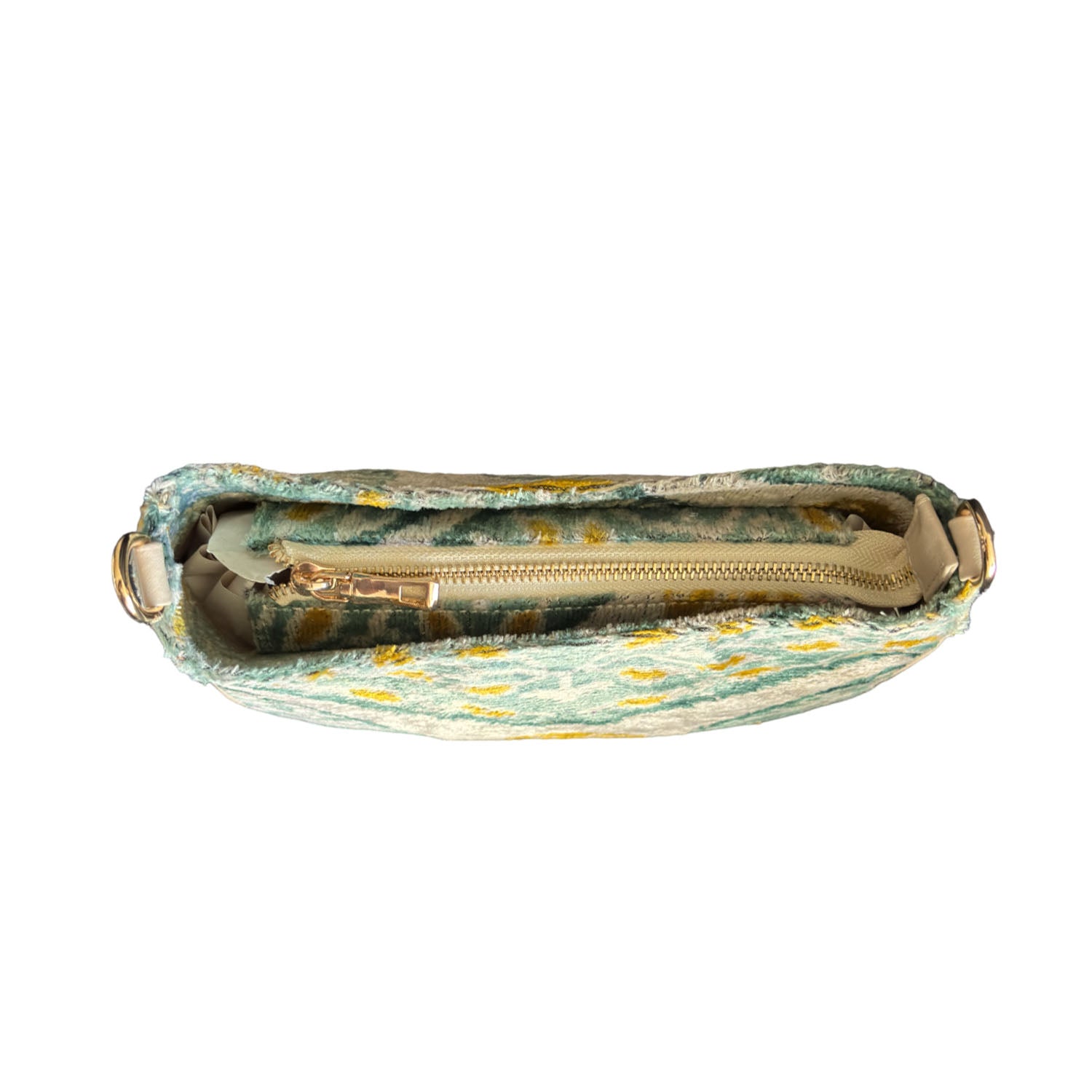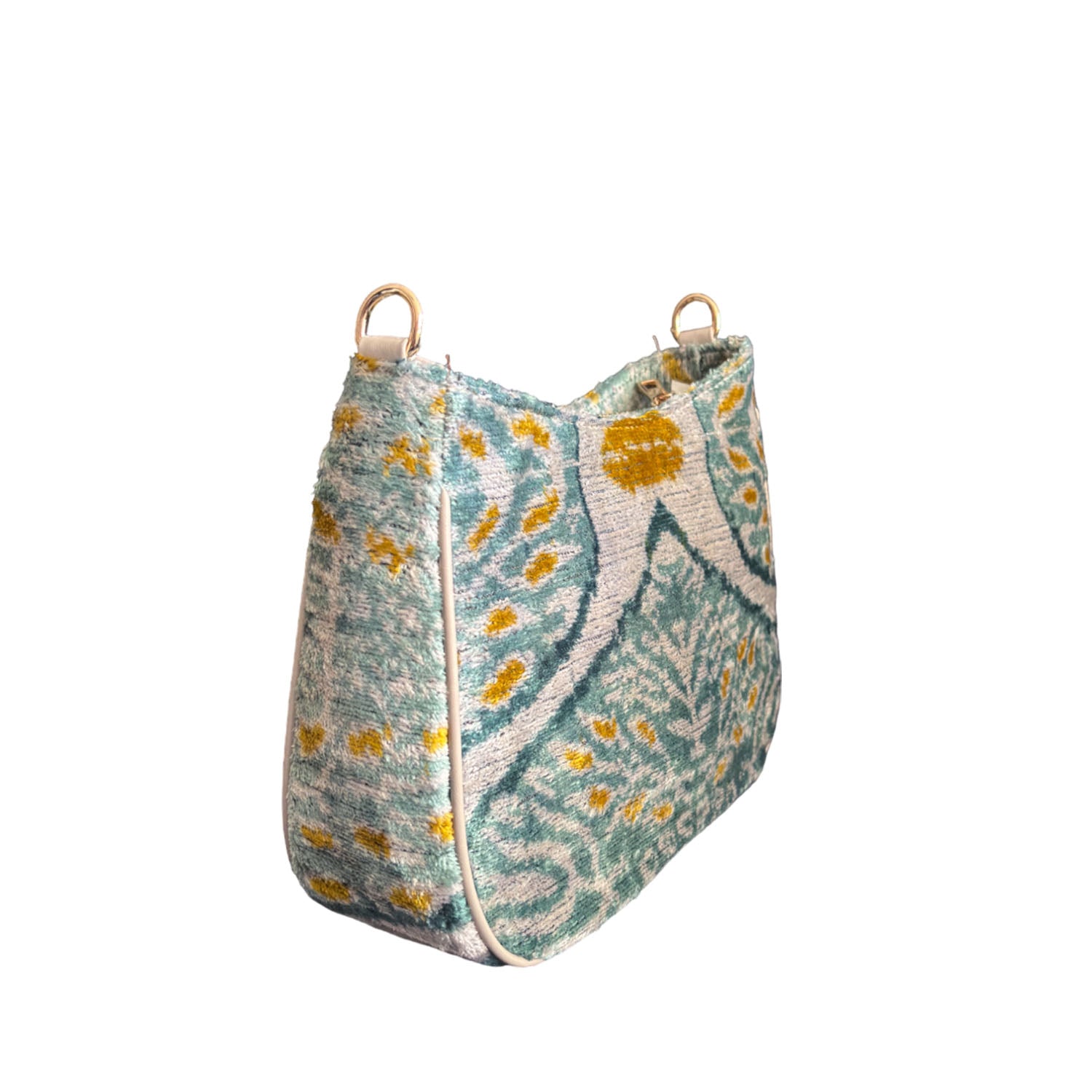 Looking for a compact shoulder bag that combines style and practicality? The Velvetica Mini Nelly Bag is designed to meet your needs with its elegant, space-efficient design. Crafted from luxurious handwoven velvet—75% silk and 25% organic cotton—this bag adds a touch of sophistication to any outfit. Ideal for daily use, it features a genuine leather strap and a well-organized interior with a zip-top closure, fabric lining, and an internal zipper pocket. Handmade in Turkey, it promises superior quality and style.