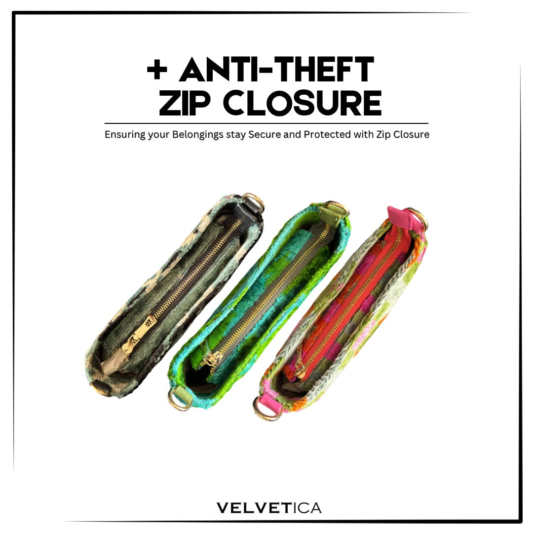 Looking for a compact shoulder bag that combines style and practicality? The Velvetica Mini Nelly Bag is designed to meet your needs with its elegant, space-efficient design. Crafted from luxurious handwoven velvet—75% silk and 25% organic cotton—this bag adds a touch of sophistication to any outfit. Ideal for daily use, it features a genuine leather strap and a well-organized interior with a zip-top closure, fabric lining, and an internal zipper pocket. Handmade in Turkey, it promises superior quality and style.