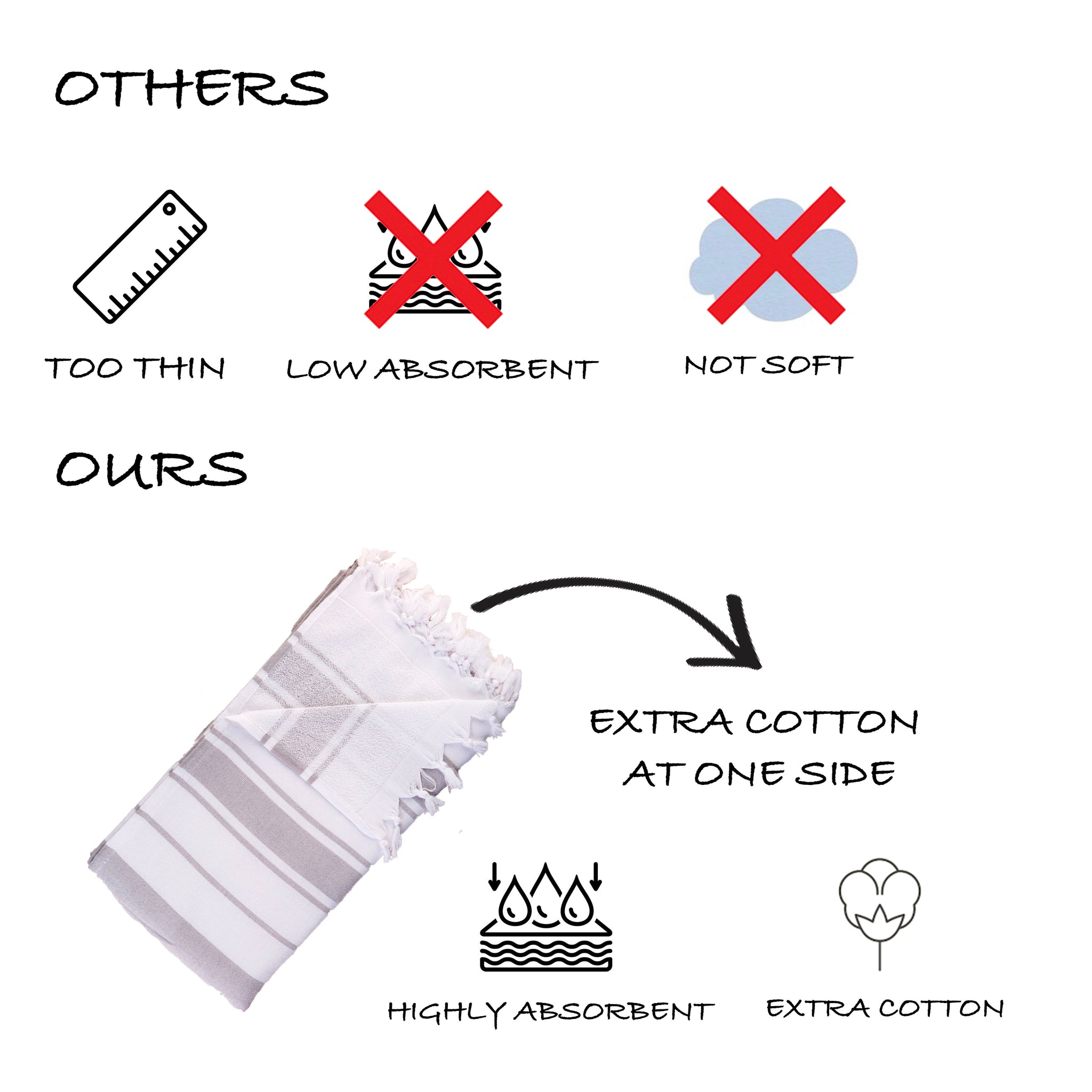 This traditional PREMIUIM Turkish Organic Peshtemal towel is made as one side Pashtemal (ideal for beach) and other side as a thin towel (to dry body). So it is double sided. It is a fashionable item coming in all sorts of eye-catching colors and designs. It can serve as more than just a towel.