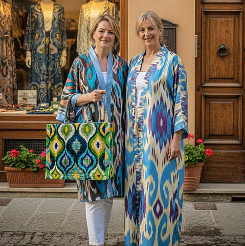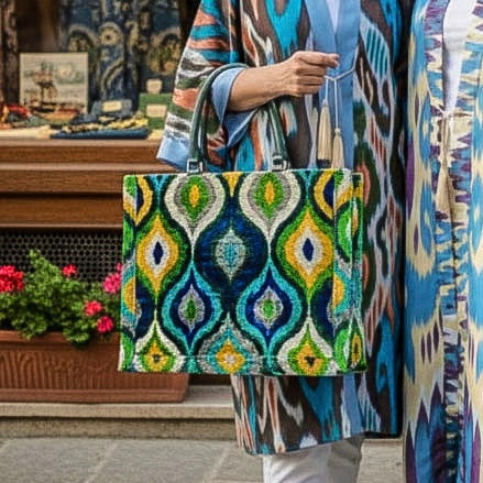 IKAT Velvet: %75 silk and %25 organic cotton;
