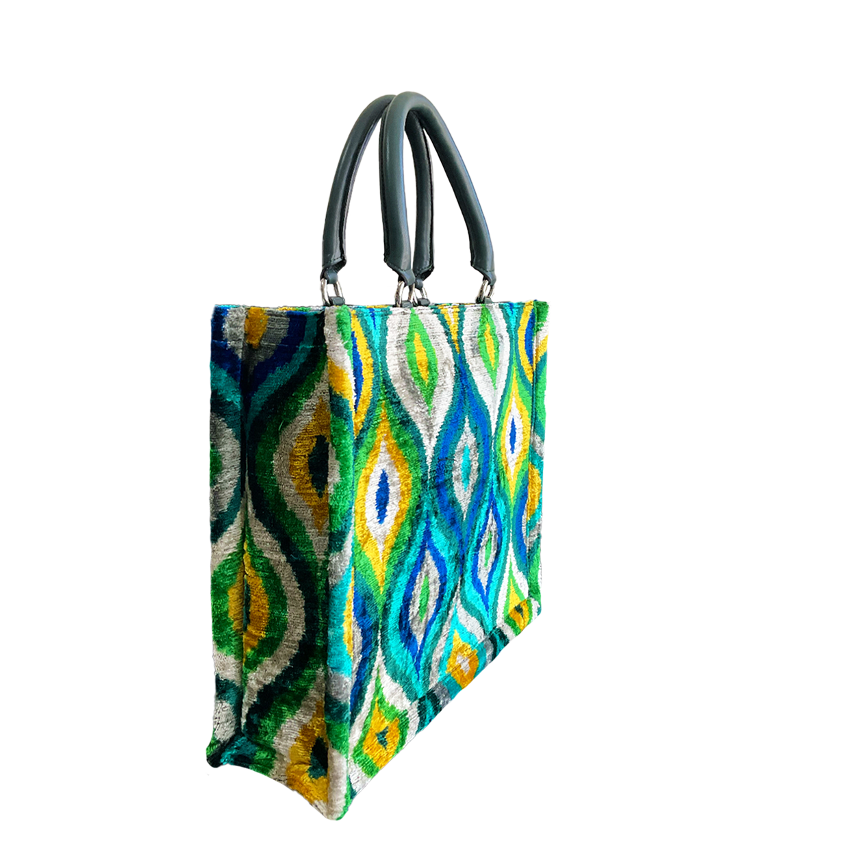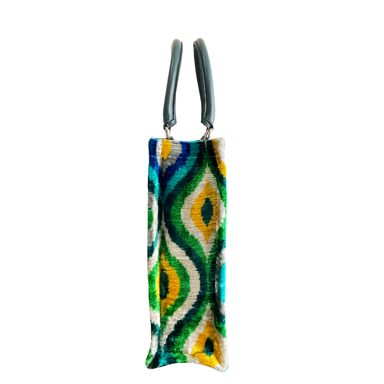 Where Heritage Meets Modern Luxury. Handcrafted in Istanbul and designed in Italy, this exquisite tote is a tribute to artisanal excellence. Made from authentic Silk Velvet Ikat, it blends timeless tradition with a sophisticated, contemporary silhouette.