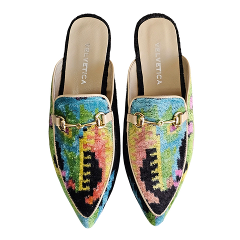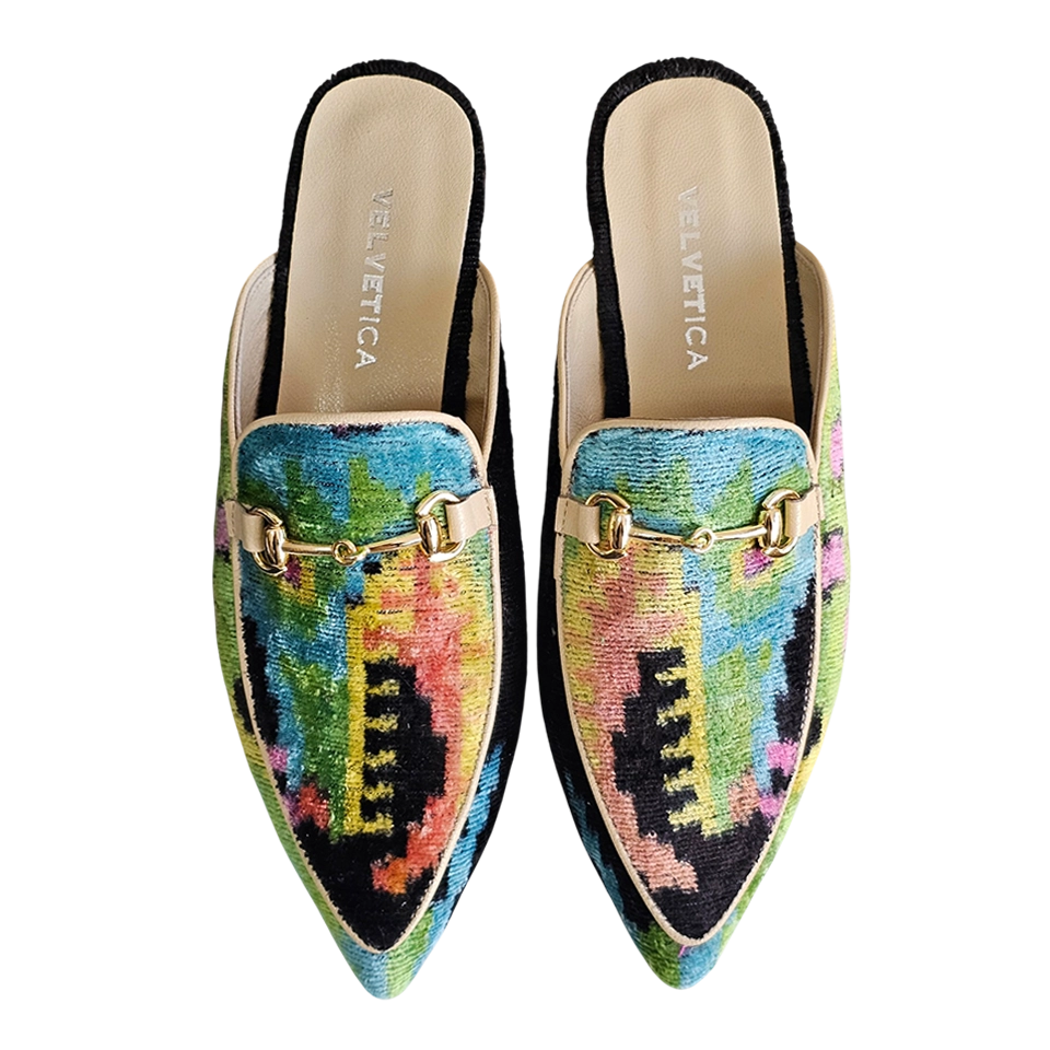 Entre no luxo artesanal. Feitas à mão em Istambul, Turquia, usando vibrante veludo de seda, estas mules combinam um toque boémio com conforto diário. A sola de couro genuíno garante estabilidade, enquanto o design respirável mantém os seus pés livres de bolhas.